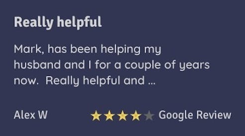 Mark, has been helping my husband and I for a couple of years now. Really helpful and knowledgeable, we have just gone through another painless review with Mark of our personal and business insurances. Would definitely recommend.